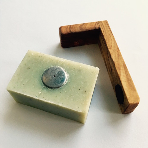 Deze prachtige zeephouder van olijfhout draagt je blok zeep met behulp van een magneet en een metalen schijfje met tandjes die je eenvoudig in de zeep drukt. Superhandig, want op deze manier droogt je zeep dus heel snel en zal nooit in een plasje water weg smelten. Zo gaat je zeep veel langer mee. Je kunt deze houder aan de muur bevestigen door middel van de reeds bevestigde plakstrip. Dus je hoeft niet met de boormachine aan de gang. Maak wel eerst het oppervlak even vetvrij en droog.